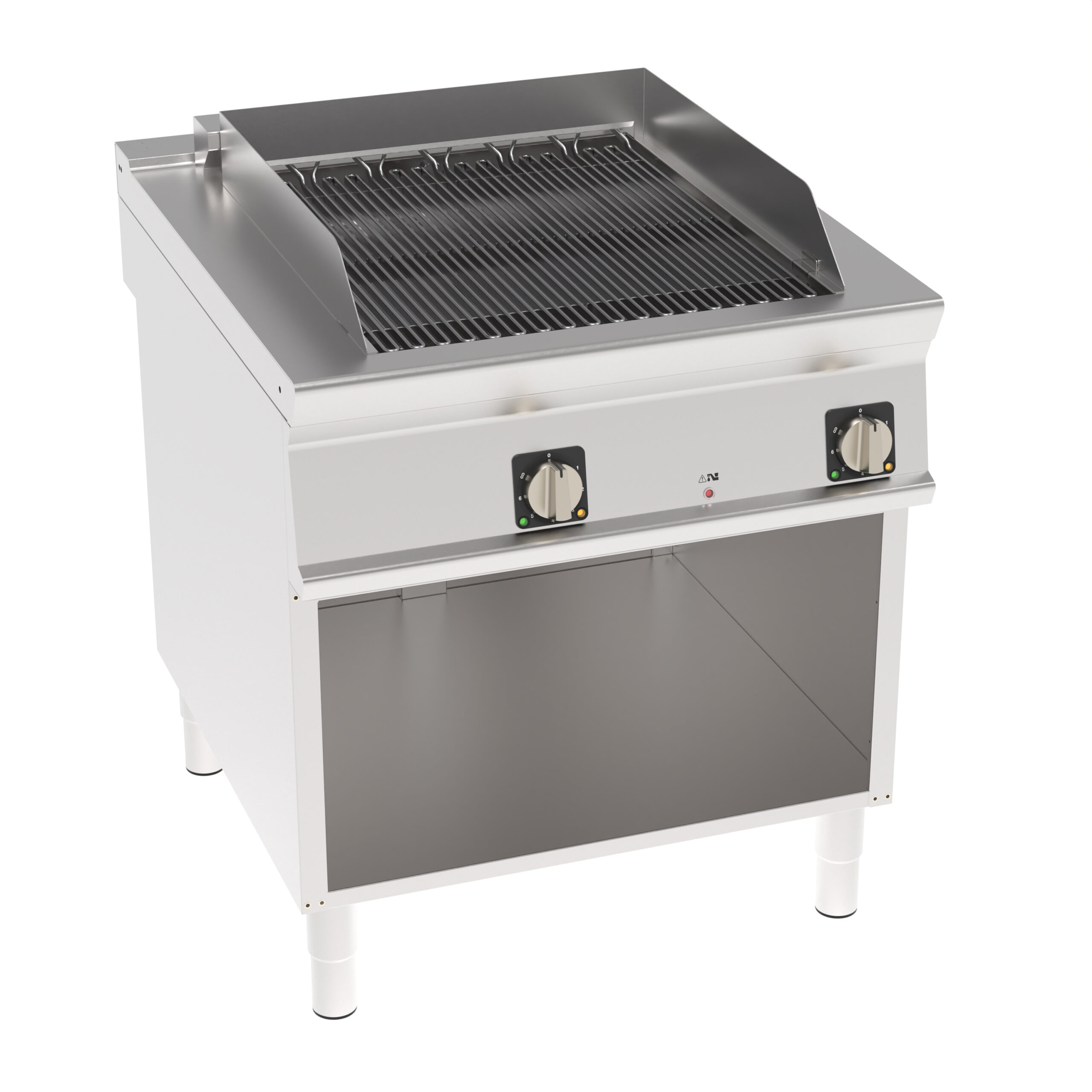 Freestanding electric contact Grill with water on open cabinet